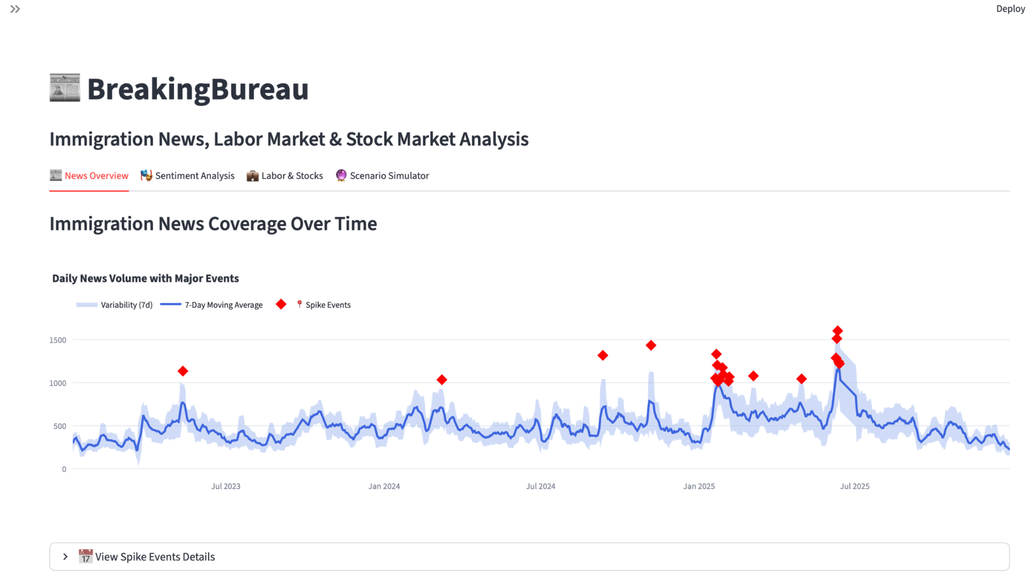 Title: BreakingBureau Subtitle: Immigration News, Labor Market & Stock Market Analysis. Description: A data analysis project examining the relationship between immigration-related news coverage and U.S. economic indicators.